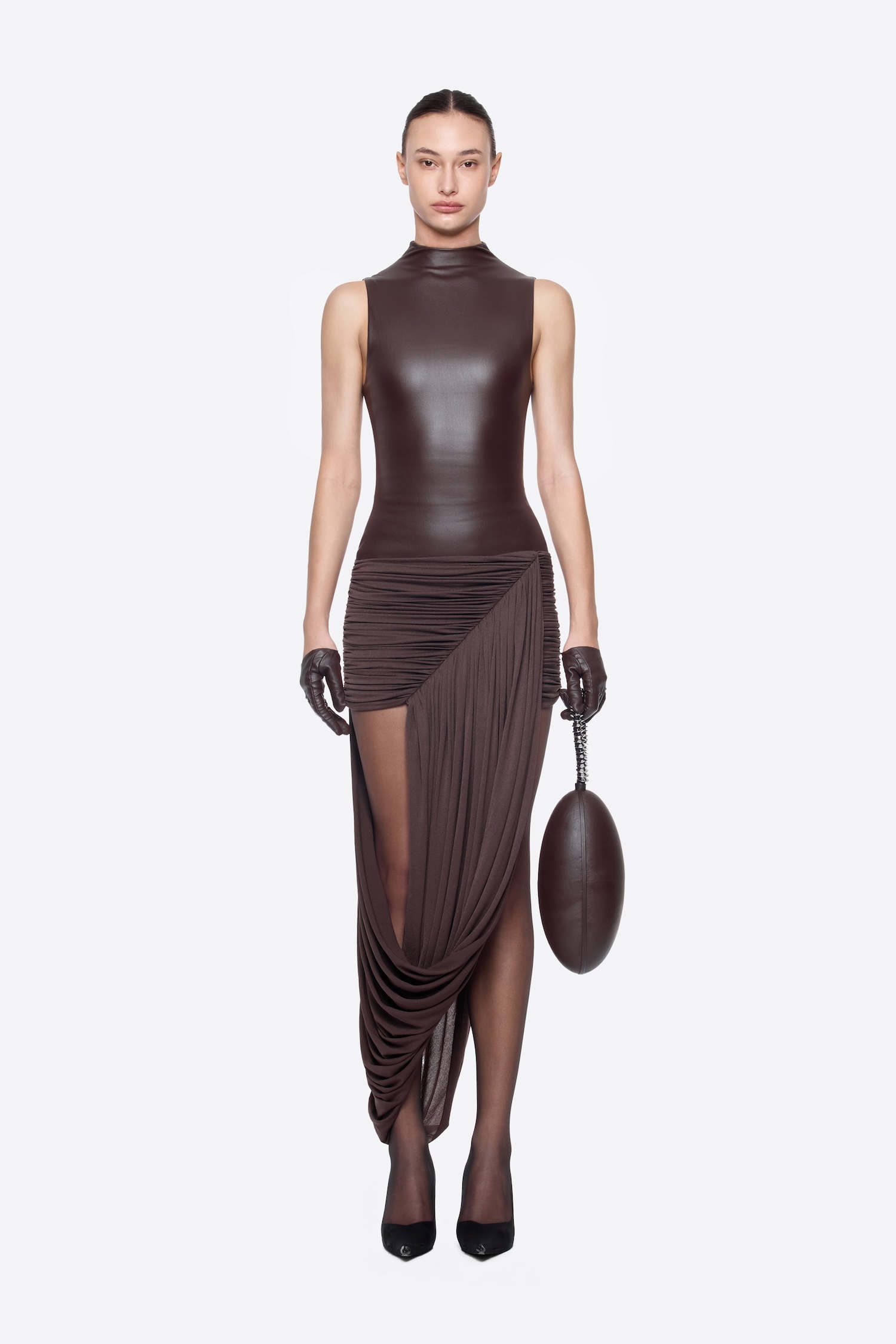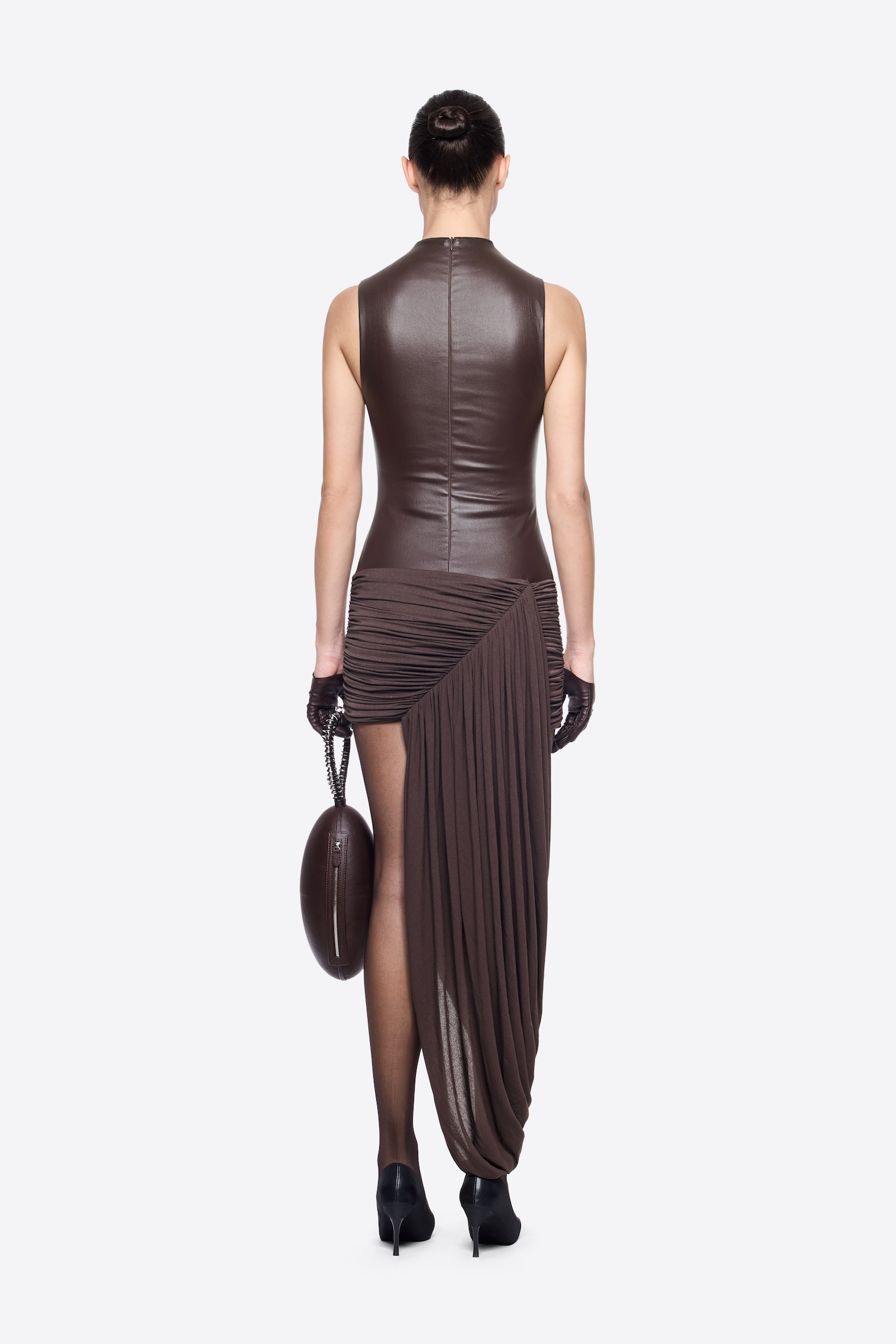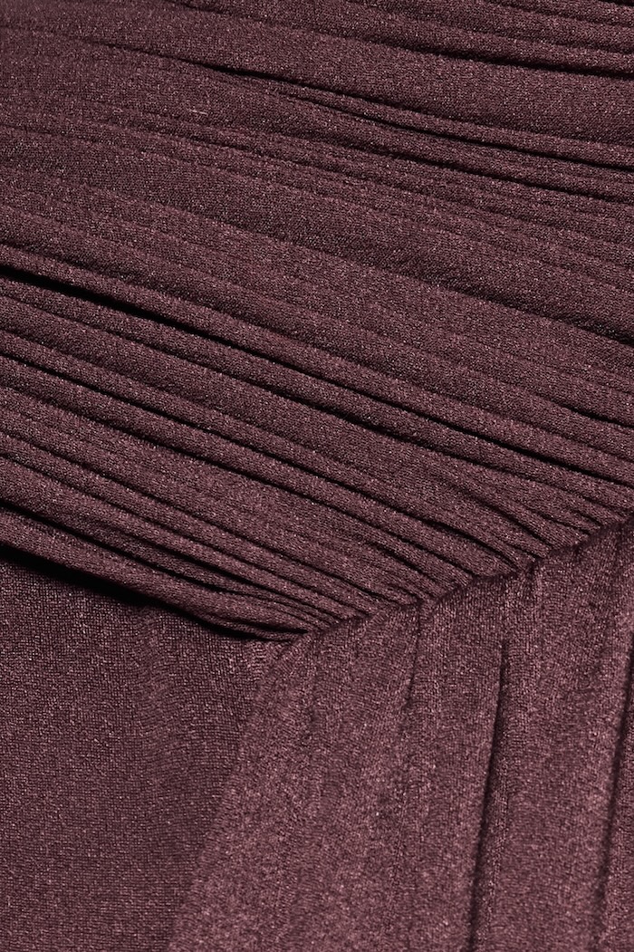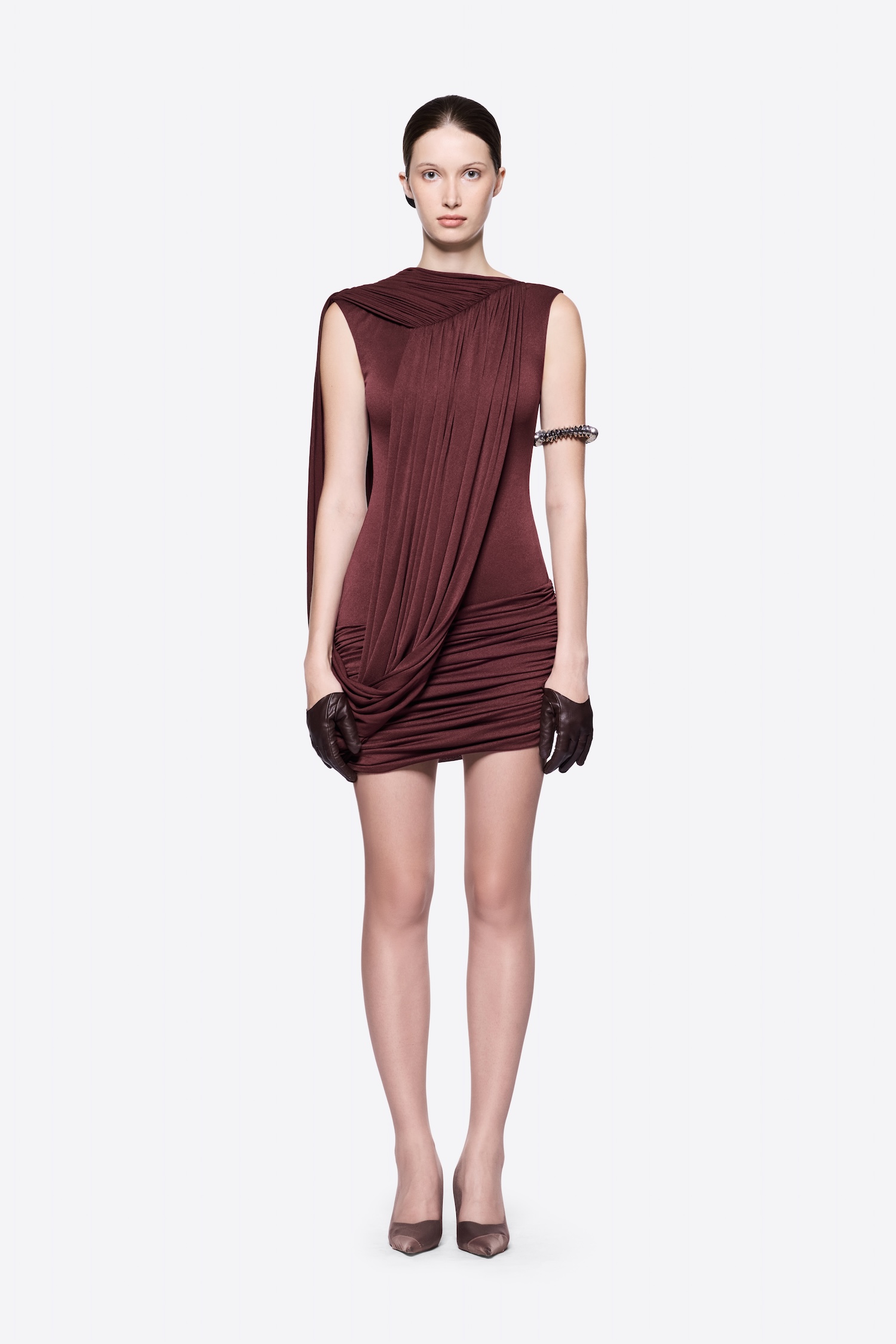 – DETAIL: SHOULDER-PADDED, ASYMMETRICAL, CROSS-DRAPED SHOULDER