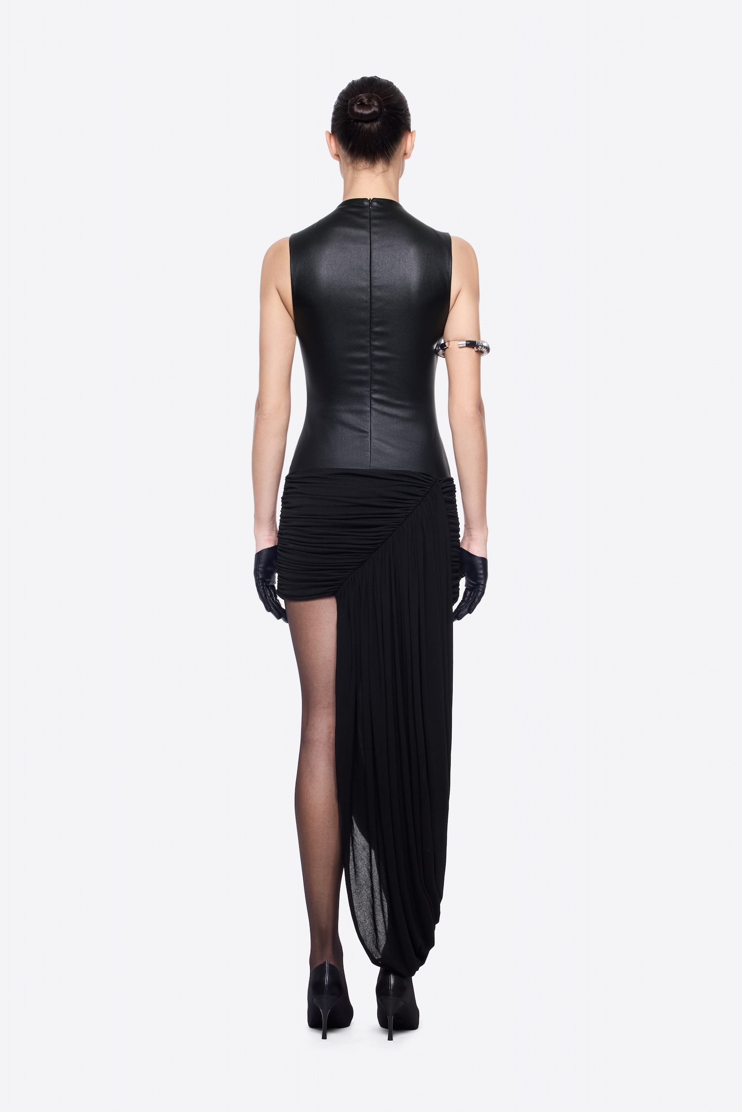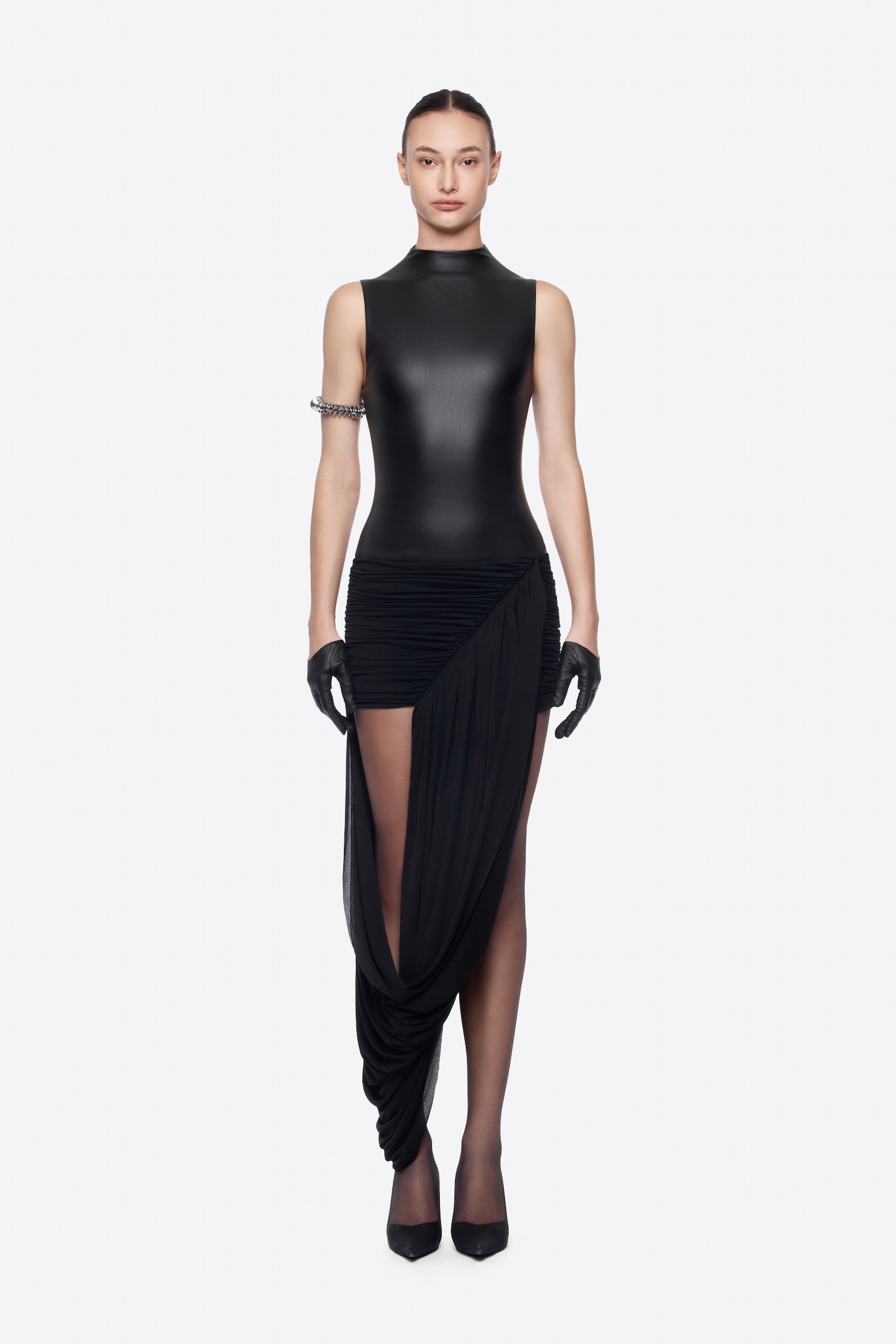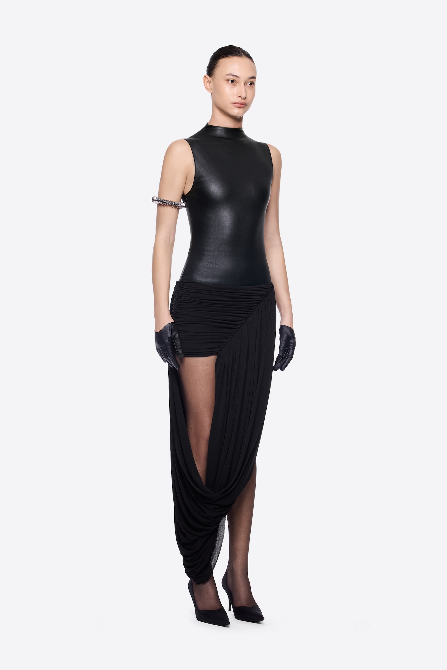 – DETAIL: SLEEVELESS, ASYMMETRICAL DRAPING
