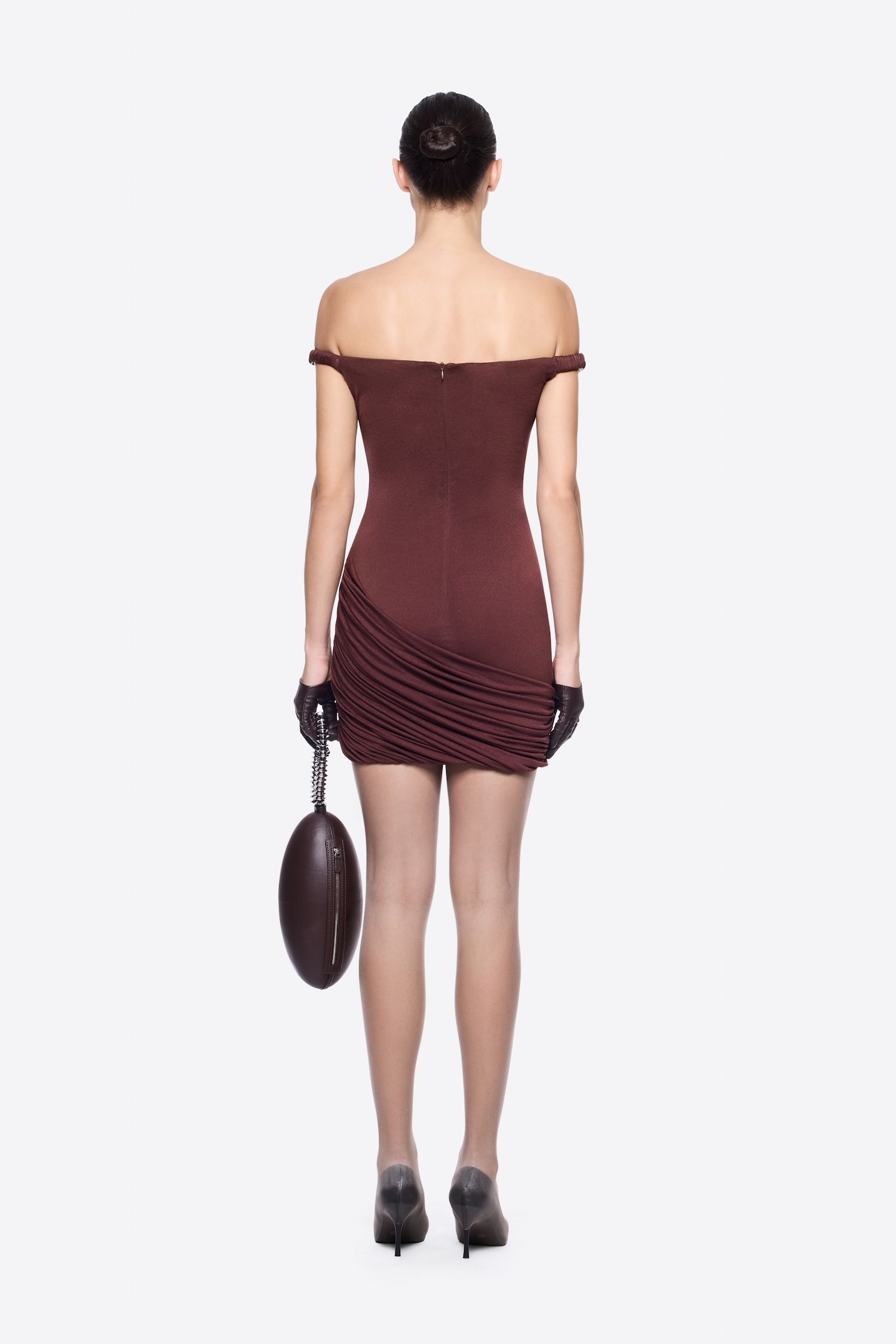 FORM-FITTING SLEEVELESS DRESS WITH ASYMMETRICAL HIP DRAPING DETAILS
