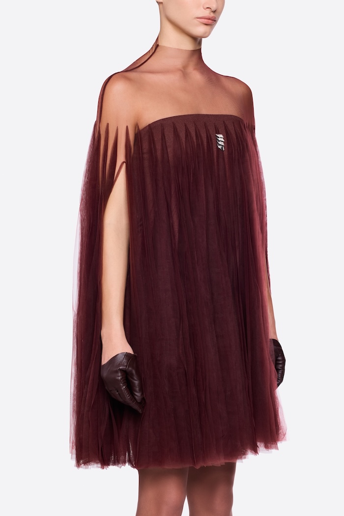 – FORM: LOOSE-FIT SHORT CAPE, FORM-FITTING MINI DRESS