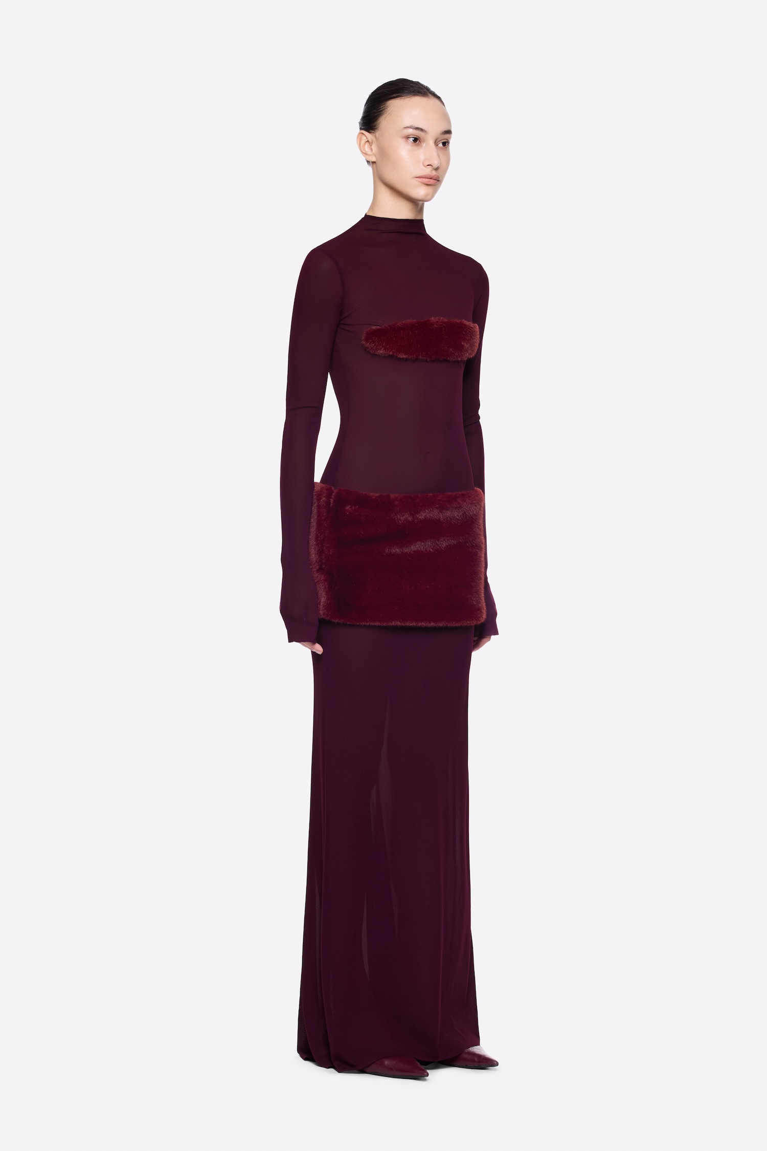 FORM-FITTING DOUBLE LAYER DRESS FEATURING SYMBOLIC FUR BUST CUP